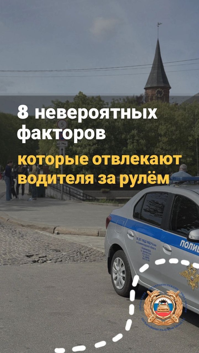 📎 8 невероятных факторов, которые отвлекают водителя за рулём Кроме аудиосообщений, SMS и телефонных разговоров существуют другие факторы, влияющие на безопасность вождения: 1. Разговор с пассажиром Это самый популярный фактор отвлечения внимания водителя от дороги — 65 % водителей не осознают этот риск. 2. Дети в салоне Находясь в автомобиле с детьми, водитель становится многозадачным: следит, реагирует, оборачивается и перестаёт контролировать дорожную ситуацию. 3. Аудиокниги Водитель погружается в сюжет, анализирует его и, как следствие, перестаёт полноценно следить за дорогой. 4. Талисманы на зеркале Водитель непроизвольно переводит взгляд с дорожных объектов на висящие украшения («висюльки») и не может полностью сосредоточиться на управлении транспортным средством. 5. Музыка 90 % водителей допускают серьёзные ошибки на дороге, если в машине звучит любимая композиция. Любая другая музыка на высокой громкости также является мощным отвлекающим фактором. 6. HANDS-FREE Ис