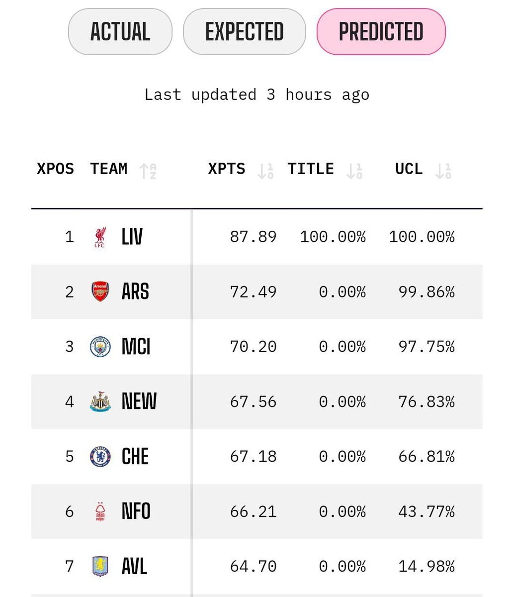 Никогда еще суперкомпьютер Opta так не шатало. Уже верит в попадание "Челси" в Лигу чемпионов — спасибо "Ноттингему" за прекрасную игру в последних матчах! @lookatfacts