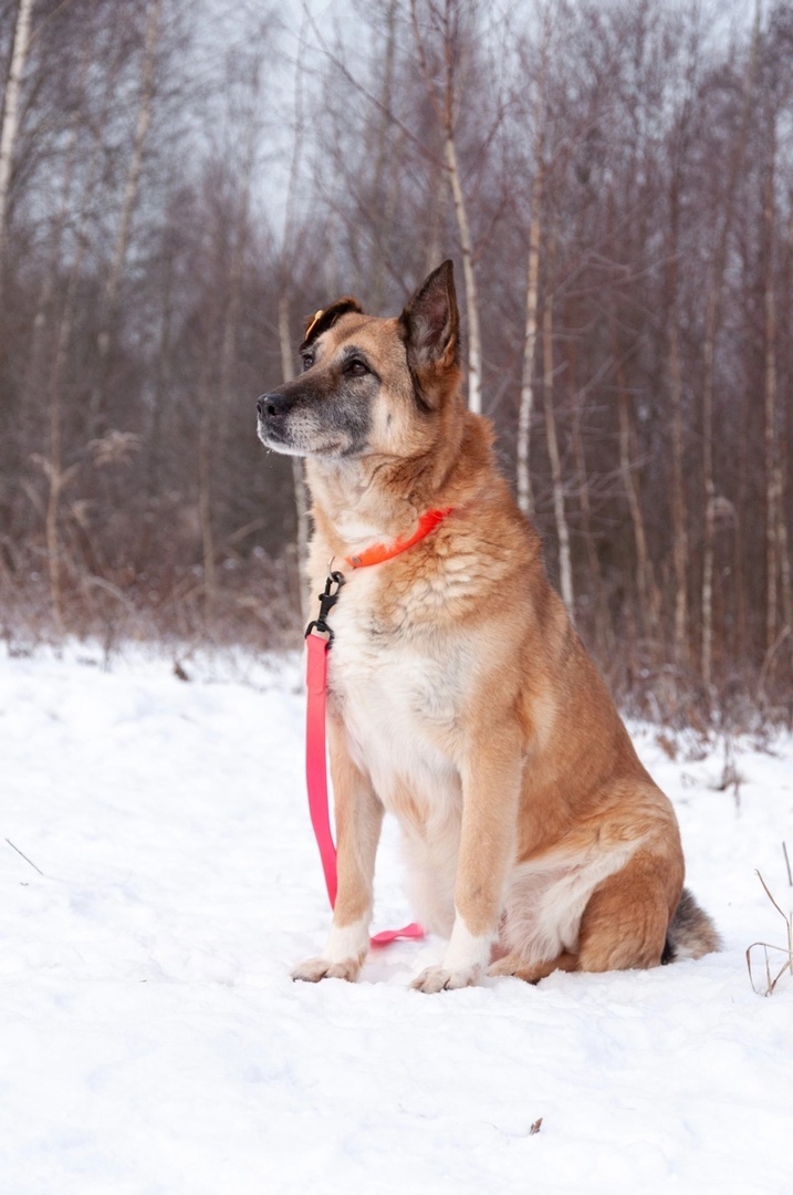 Имеет яркий окрас, по характеру спокойная, прекрасно ладит с другими собаками на прогулке. Если идёт гулять в компании, то конечно прыти нам не занимать! Но стоит выйти на прогулку вдвоём и Дина становится сама степенность. А с каким истинно женским изяществом она берёт лакомство с руки! Всегда нежно, не касаясь зубами вашей ладони!