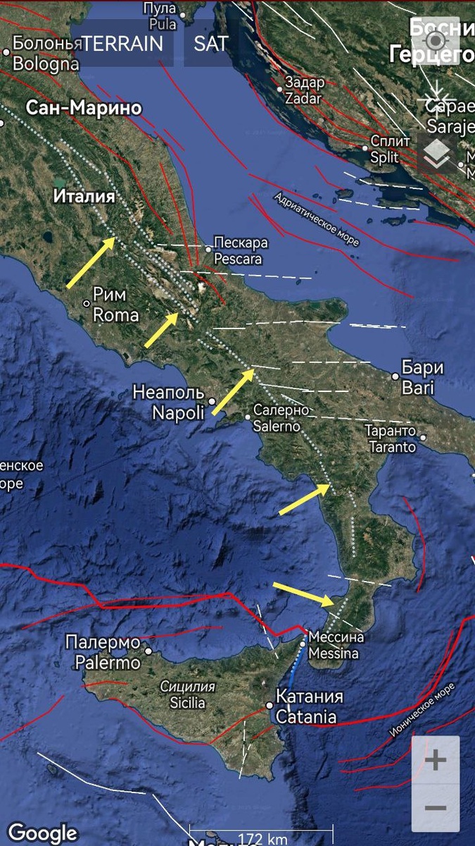 Возобновилась дегазация по Италии. Протяженность зоны тянет на событие М6.3+/-0.2 ==== Degassing in Italy resumed. The length of the zone is drawn to the M6.3+/-0.2 event.