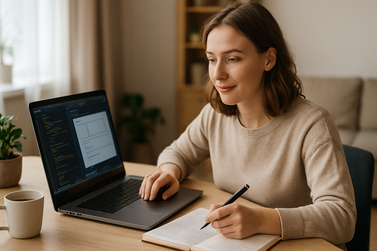 Когда я только начала учёбу в OTUS, всё казалось немного пугающим — столько новой информации! Но уже довольно быстро мы перешли от теории к практике. Одним из первых заданий, где я по-настоящему почувствовала, что что-то получается, стала верстка простого одностраничного сайта — лендинга. Используя HTML и CSS, я шаг за шагом переводила дизайн-макет в код, применяя знания из самых первых модулей курса.