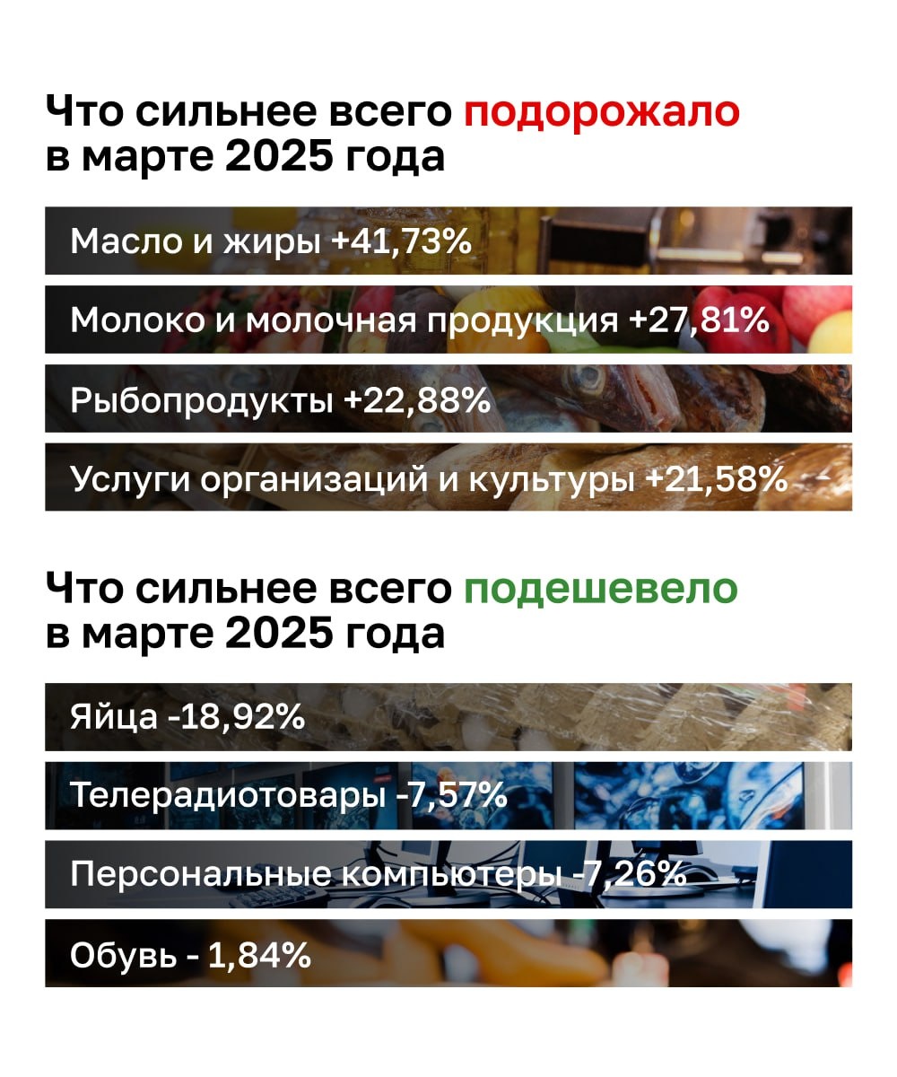 В ответ на пост 💳📈В продуктах плюс, в технике - минус: что происходит с инфляцией в Татарстане Годовая инфляция в марте в Татарстане не просто ускорилась, но и оказалась выше, чем в целом по стране. Отмечена рекордная динамика роста: 🔹Покатель годовой инфляции в Татарстане в марте достиг 11,1% после 10,65% в феврале - последний показатель выше 11% был в январе 2023-го 🔹Прирост в продуктах питания ускорился до 14,67% - после 13,62% месяцем ранее - рекорд с сентября 2022-го 🔹Рост цен на услуги - до 14% - после 13,5% в феврале: рекордный показатель с 2012-го 🔹Рост цен на непродовольственные товары в марте замедлился до 5,67% с 5,82% в феврале: последний раз такое случалось в октябре 2024-го. Подробнее - в репортаже «Татар-Информа». @tatmediaofficial