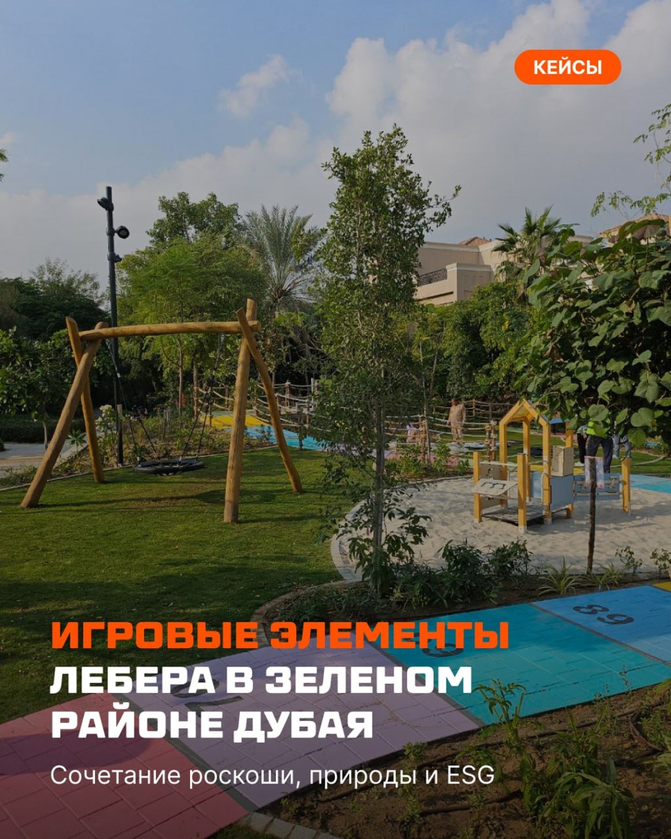 В экологически благоприятном и престижном районе Дубая Al Barari, который славится своими зелеными насаждениями и природными водоемами, мы установили игровые элементы из Натуральной серии Эко Лебер. Используя естественные особенности ландшафта, разработали горку с прочным скатом из HDPE и боковыми бортами из пластика HPL.