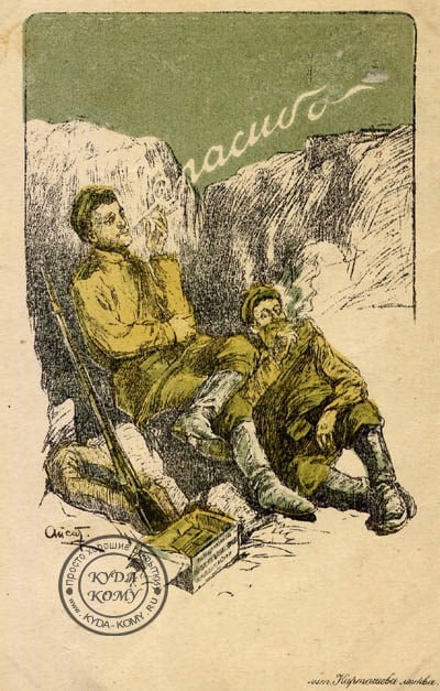 Рисунок 1914 года для плаката "Жертвуйте на табак солтату".