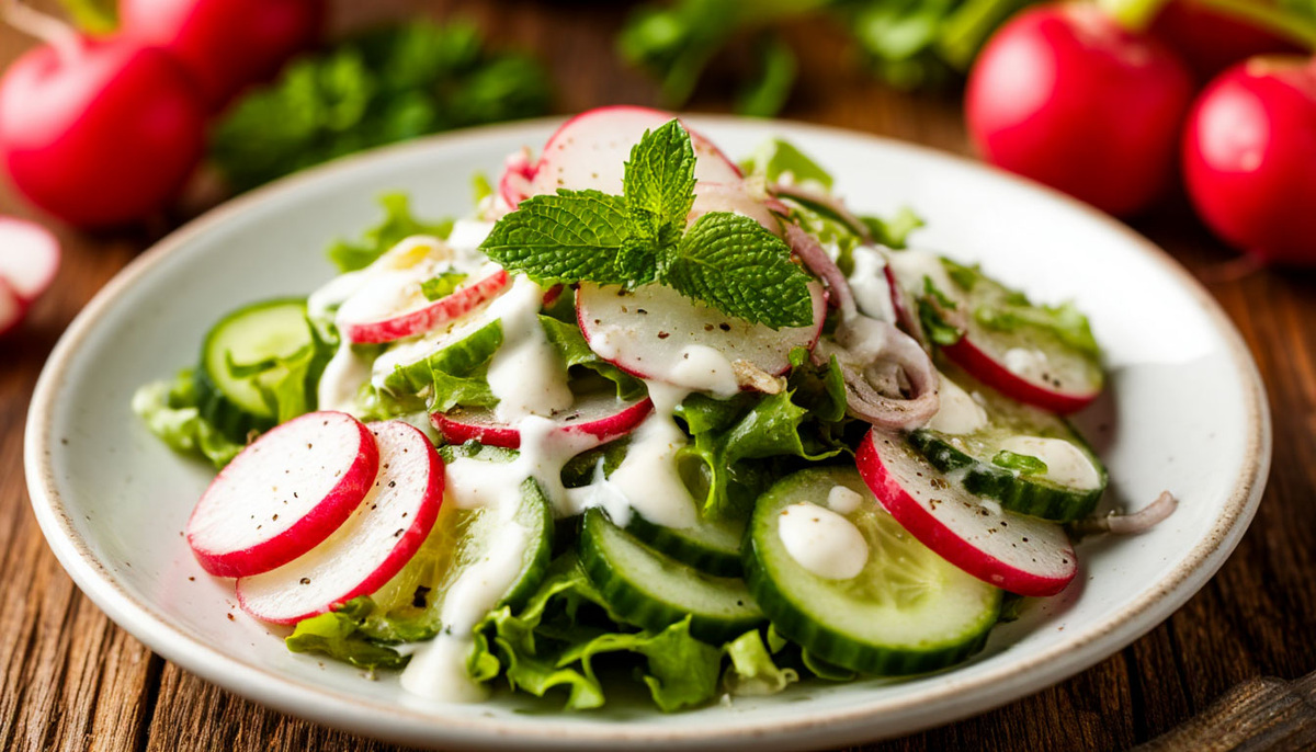 Редиска — настоящий весенний витаминный взрыв! Она хрустящая, сочная, с легкой горчинкой и отлично сочетается с разными продуктами. Предлагаем вам три простых салата, которые удивят ярким вкусом и украсят любой стол. 1. Салат с редиской, огурцом и творожным соусом Идеален для легкого перекуса или дополнения к основному блюду. Ингредиенты: - Редиска — 10 шт. (тонко нарезать) - Огурец — 1 шт. (соломкой) - Зеленый лук — пучок - Укроп — по вкусу - Для соуса: - Мягкий творог (или греческий йогурт) — 150 г - Чеснок — 1 зубчик - Лимонный сок — 1 ч. л. - Соль, перец — по вкусу Приготовление: 1. Смешайте творог с измельченным чесноком, лимонным соком, солью и перцем. 2. Нарежьте редис и огурец, добавьте зелень. 3. Заправьте творожным соусом и сразу подавайте. Почему попробовать? — Нежная творожная заправка смягчает остроту редиса, а огурец добавляет свежести. 2. Тёплый салат с редиской, яйцом и авокадо Сытный, с кремовой текстурой и пикантными нотками. Ингредиенты: - Редиска — 8-10 шт. (по