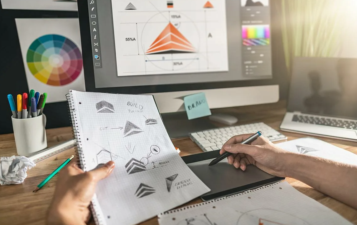 Представь логотип кафе. Круг - как чашка кофе. Внутри рисуешь волну (как пар от напитка) и пишешь название жирным шрифтом. Вот и всё - уютный и понятный образ! 🍵 Как повторить: Треугольники - это динамика! Они отлично работают для спорта, IT и креативных проектов. Поиграй с углами: острый верх - рост, перевёрнутый - стабильность. Пример: