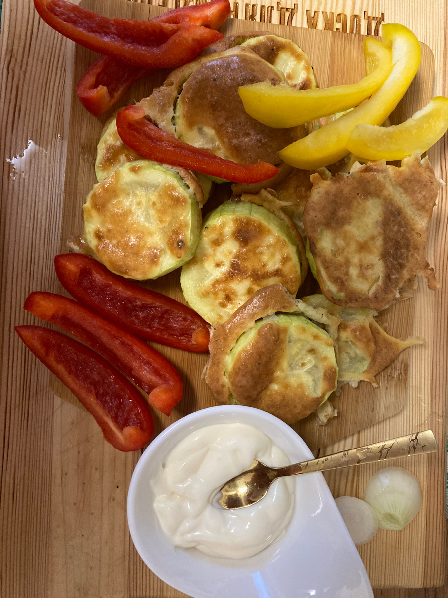 Кабачок очистить нарезать кружочками 3- яйца взбить вилкой добавить муки до консистенции сметаны. Соль можно специи взбить духовку разогреть постелить пекарскую бумагу обмакнуть кабачок и на противень выпекать до золотистой корочки мягкость кабачка смотрите вилочкой,какая вас устроит. Я подаю кабачки со сметаной. приятного аппетита. Ф Ф Ф Ф