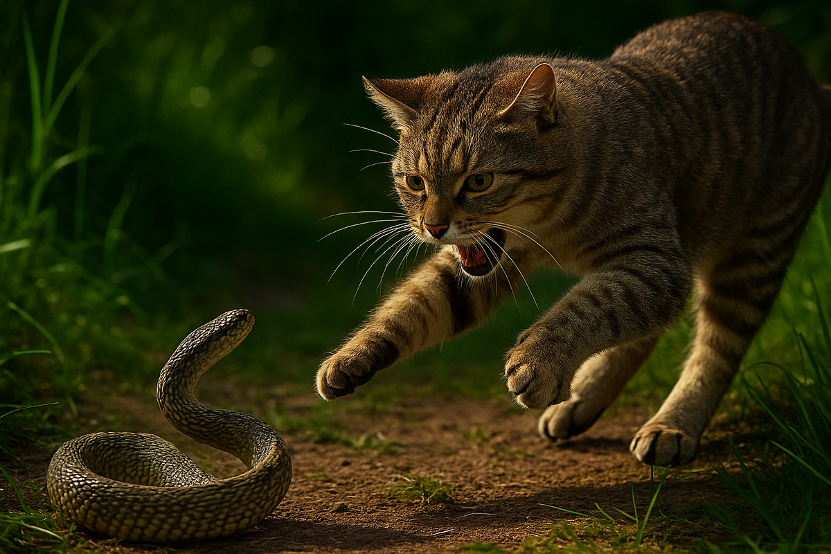 Кошка против змеи — это не просто схватка. Это древний инстинкт. Это биологический триллер.