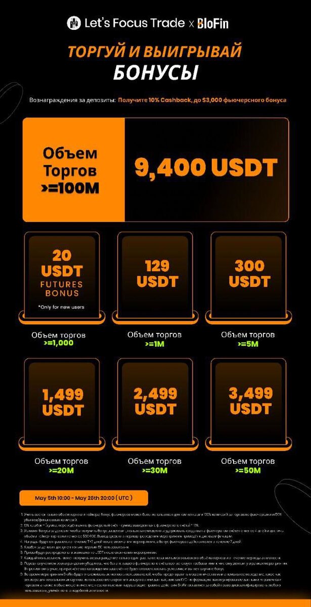 • Торговать на BloFin во время промо и достигать объемов;
