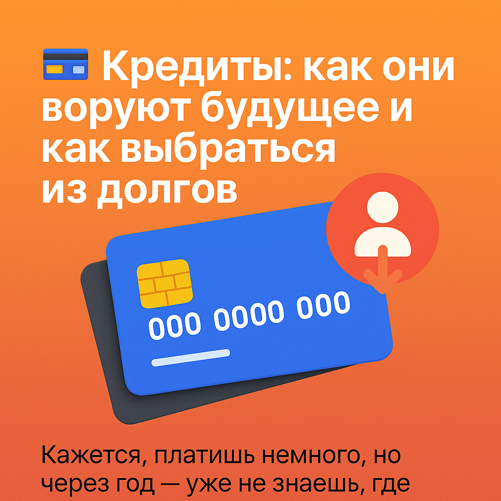 🎣 Кажется, платишь немного, но через год — уже не знаешь, где деньги. Разбираем, как кредиты портят жизнь и как выйти из этого. Банки любят, когда вы берёте кредиты. Потому что каждый рубль долга приносит им прибыль. А вот для вас кредит — это чаще петля на шее, особенно если нет чёткого плана. 📌 Плохой кредит = тот, что берётся ради "хочу", а не "надо" Задай себе 3 вопроса: 📌 1. Составь список всех долгов: 📌 2. Выбери стратегию: 📌 3. Сократи расходы