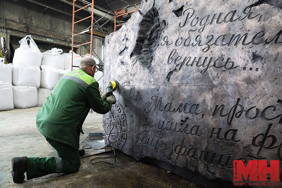 В литейном цеху скульптурного комбината завершили изготовление бронзовой композиции «Живая память благодарных поколений». Уникальный памятник 5 мая передали в Москву. Подробности — в материале корреспондента агентства «Минск-Новости». Композиция станет третьей составляющей проекта, зародившегося в 2021 году. Согласно концепции, идентичные бронзовые монументы должны были появиться в городах-героях: в 2022 году первый народный памятник из трилогии установили в парке Победы в Минске, второй — в Брестской крепости в 2024 году. Третья скульптурная композиция будет установлена в Москве в 2025-м. Бронзовые письмо и дерево смонтируют на открытой площадке музея «Г.О.Р.А» на Поклонной горе. В мае пройдет церемония открытия. — Более 27 миллионов людей потеряла наша советская Родина в борьбе с фашизмом, — отметил директор благотворительного фонда Алексей Талай. — Мы освободили Европу и весь мир от коричневой чумы. Сегодня за границей, в том числе в европейских странах, сносятся памятники героям т