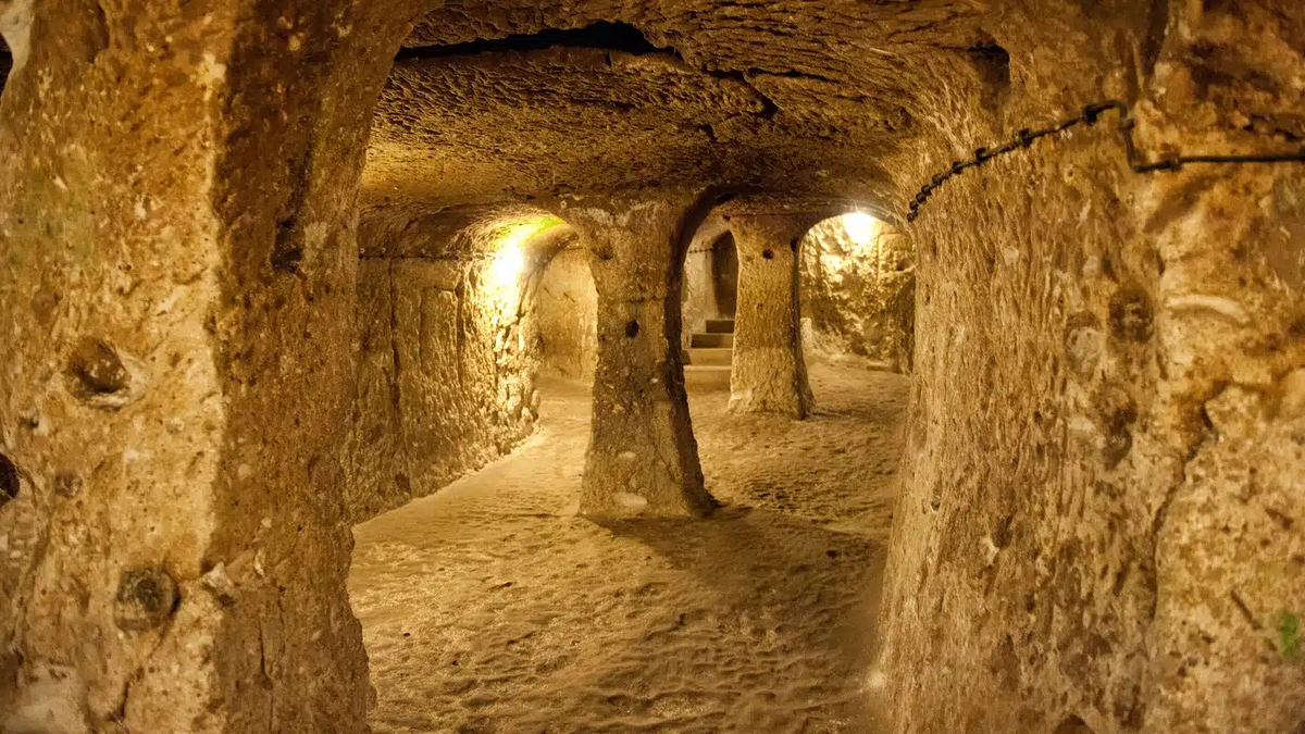 Деринкую - огромный подземный город, вырезанный прямо в мягких вулканических породах, представляет собой сложную сеть туннелей и комнат, распределённых по меньшей мере на восьми этажах под землёй, хотя некоторые исследования предполагают, что уровней может быть до двадцати.