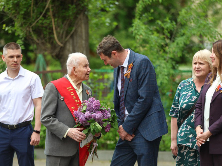 5 мая. /MEDIA TALK/. В преддверии праздника Дня Победы Сергей Петрин лично навестил фронтовика, вручил ему награду и передал поздравления от Губернатора Воронежской области Александра Гусева. Фото: Пресс-служба Администрации городского округа города Воронеж