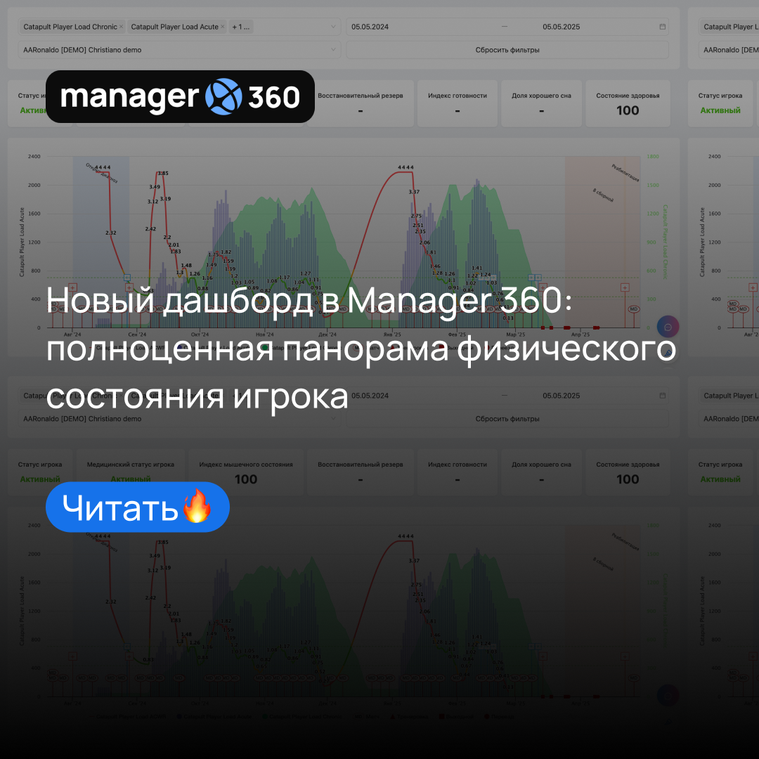 Теперь на этот вопрос можно ответить точно. В новом дашборде Manager 360 — вся история игрока: матчи, боли, процедуры, травмы, доступность, нагрузки и даже субъективное самочувствие. Всё — на одной шкале. Можно кликнуть и провалиться в любое событие. Можно увидеть связи. Можно наконец-то понять, а не догадываться. 📊 Скоро и предсказания травм появятся. 👉 Читайте подробности: https://wiki.manager360.pro/ru/home/m360-blog/player-premium-report-6-5-25