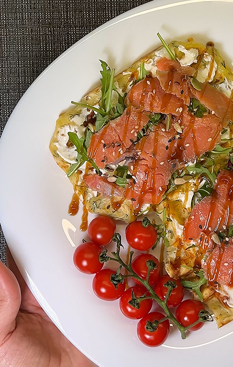 На сцену выходят сырные вафли с красной рыбой — завтрак, ради которого даже можно не жаловаться на понедельник. Ингредиенты (на случай, если решишь удивить себя): * 150 мл кефира (тот самый, что ждал своего часа) * 100 г твёрдого сыра (не жалей, жизнь одна) * 1 яйцо * 150 г муки * Специи — что найдётся в шкафу и по настроению Для подачи — чтобы красиво и вкусно: * Творожный сыр * Руккола (зелень, которая делает вид, что ты гурман) * Слабосолёная форель — можно и по-богатому, и просто вкусно * Смесь семян и немного соуса терияки — чтобы было «вау» Рецепт: 1. Смешай ингредиенты, добавь сыр, посмотри на тесто с надеждой. 2. Вафельница или сковорода — всё сгодится, если есть вдохновение. 3. Намажь, выложи, укрась. Сфотографируй. 4. Наслаждайся и делай вид, что готовишь так каждое утро.