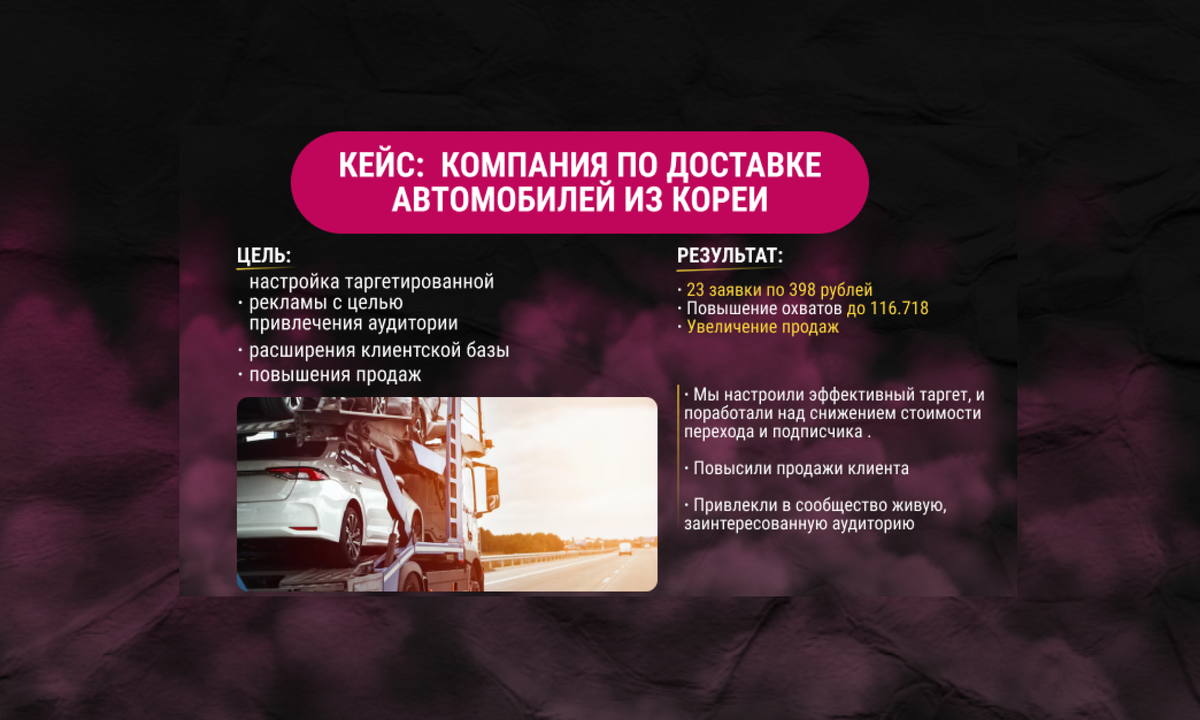 Наша задача состояла в привлечении клиентов с помощью таргета.