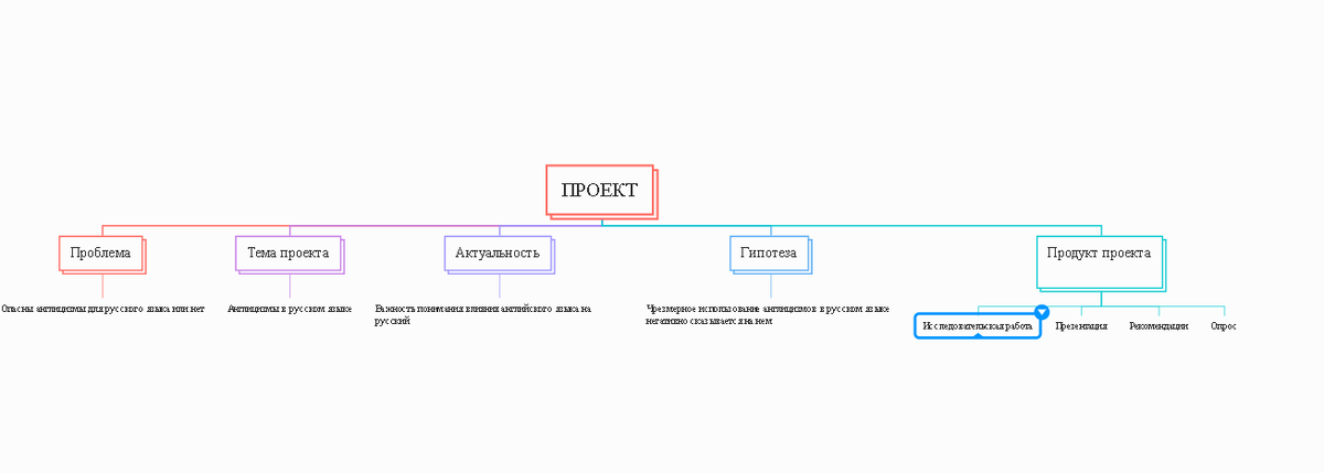Глоссарий: Проблема проекта — это важная задача или вопрос, требующий исследования и разрешения. Она возникает тогда, когда существует какая-то сложившаяся неблагоприятная ситуация или недостаток, который необходимо устранить, исправить или преодолеть путем разработки и реализации конкретного проекта. Тема проекта — это ключевое направление исследований или деятельности, обозначающее предмет рассмотрения и обсуждения. Тема отражает центральную проблему или вопрос, над которым предстоит работать ученикам, и задаёт общий вектор всей проектной деятельности. Актуальность проекта — это важность и значимость выбранного направления исследования или практической деятельности в настоящее время. Актуальным считается тот проект, который решает важные и актуальные задачи, соответствующие современным условиям и потребностям общества, семьи или самого ученика. Гипотеза проекта — это предположение или версия, выдвигаемая автором проекта для объяснения наблюдаемого явления или проблемы. Гипотезу прове