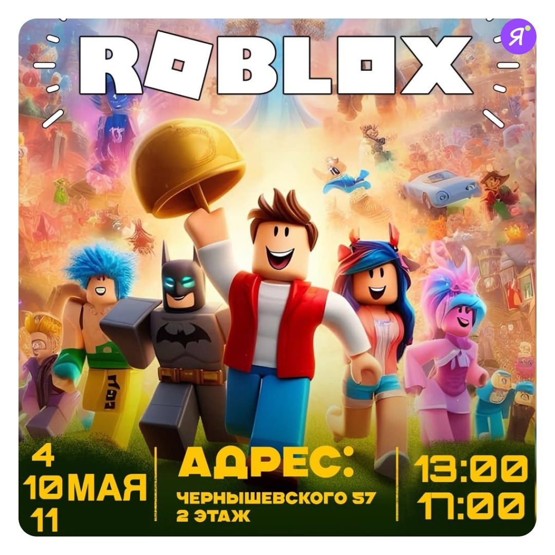 Игровая программа Roblox #ВГороде #Детям Веселые аниматоры от @corporationy_ykt развлекту юных гостей выставки Just AYAAL Expo 👾 Исследуйте выставку косплея, где вы сможете увидеть ростовые фигуры по мотивам любимых аниме, мультфильмов, фильмов и сериалов! 👾 Участвуйте в веселых играх! 👾 Сделайте яркие фотографии на фоне ваших любимых персонажей! 10-11 мая | 13:00 | 17:00 Чернышевского, 57 +79841003070 Online Якутия | Подписаться