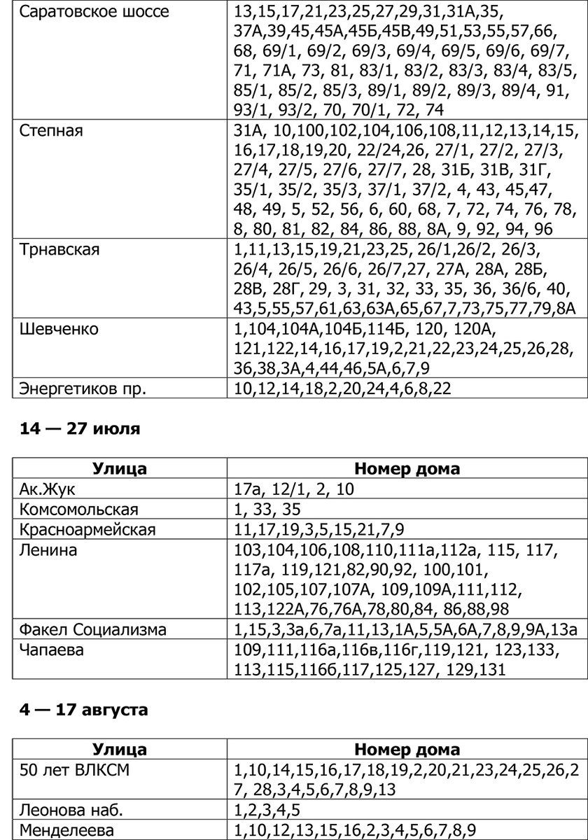 С 12 по 25 мая в заканальной части Балаково пройдут плановые гидравлические испытания тепловых сетей. В связи с этим жителям некоторых районов придётся на две недели остаться без горячей воды. Об этом сообщает Саратовский филиал «Т Плюс». Отключение затронет 3Г, 2, 3 и 4 микрорайоны, а также четыре дома в 8А. Полный список адресов включает здания, подключённые к центральным тепловым пунктам № 27, 28, 29, 31, 32, 33, 34, 75, а также дома на: Испытания проводятся ежегодно для проверки прочности труб перед отопительным сезоном. Это помогает заранее выявить возможные аварийные участки и избежать проблем зимой. «Т Плюс» приносят извинения за временные неудобства и рекомендуют жителям подготовиться к отключению. https://gazetabalakovo.ru/v-balakovo-s-12-maja-otkljuchat-gorjachuju-vodu-kakie-doma-popadajut-pod-otkljuchenie/