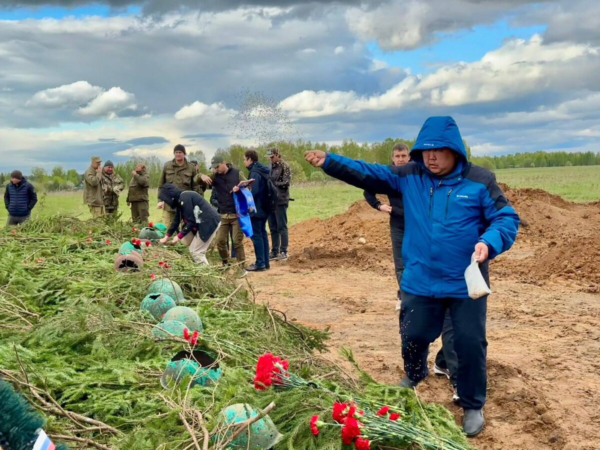 В Калужской области поисковики обнаружили останки солдата из Бурятии В Износковском районе Калужской области находится «Ивановское поле» — одно из крупнейших мест захоронения советских солдат в регионе. Здесь покоятся около четырёх тысяч воинов, которые отдали свои жизни в боях за Родину. В преддверии Дня Победы здесь с почестями предали земле останки 570 бойцов, которые погибли в сражениях с немецко-фашистскими захватчиками. Среди идентифицированных бойцов был уроженец Тункинского района Бурятии — Дондоков Бадма Лопсонович. Его правнук Намсарай Зарбаев и его супруга Аюна, а также председатель Совета депутатов Надежда Далаева приехали на церемонию, чтобы почтить память Героя. Об этом сообщили в администрации Тункинского района. 🔴Подписывайся на Тивиком 💻Проекты.Новости 📤 Поделиться бустами 📨Прислать новость @tvcomtv или в бот обратной связи @tvcomnewstv_bot