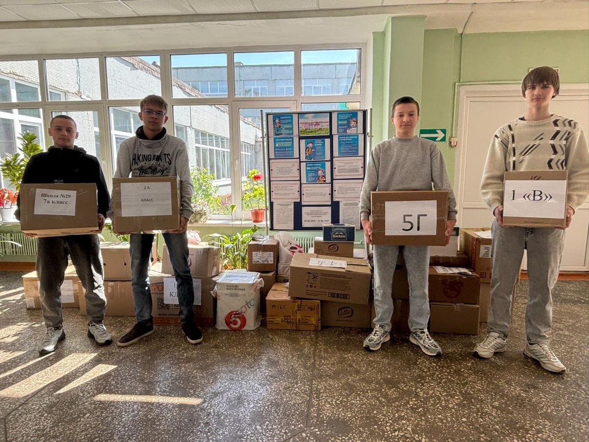 Ко Дню Победы 29-я школа Курска собрала гуманитарную помощь бойцам СВО