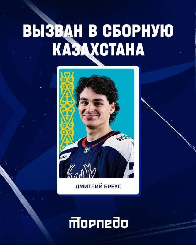 Защитник «Торпедо» 🦌 Дмитрий Бреус получил вызов в национальную сборную Казахстана для участия в чемпионате мира по хоккею 2025 года