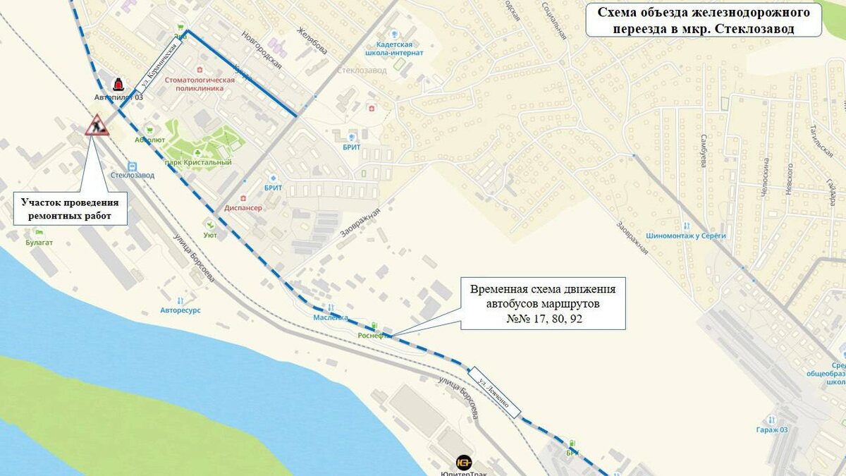 В ответ на пост Из-за закрытие переезда на Стеклозаводе изменится схема движения транспорта 6 мая с 20:00 до 7 мая 07:00 будут изменены схемы движения автобусов маршрутов № 17, 80, 92. Объезд закрытого для движения участка будет осуществляться по пр. 50-летия Октября – ул. Революции 1905 года – ул. Левченко – ул. Радикальцева – далее по утвержденным схемам в обоих направлениях. 🔴Подписывайся на Тивиком 💻Проекты.Новости 📤 Поделиться бустами 📨Прислать новость @tvcomtv или в бот обратной связи @tvcomnewstv_bot