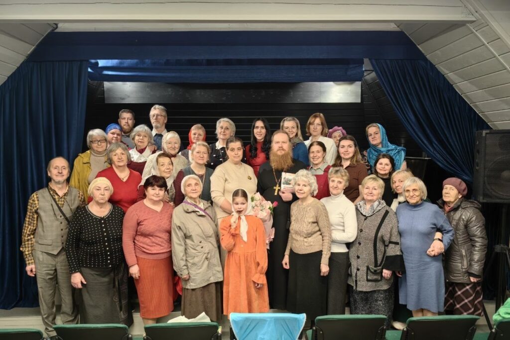 4 мая 2025 года, в Неделю 3-ю по Пасхе святых жён-мироносиц, в преддверии Дня Победы в актовом зале Серафимовского храма с. Алабушево г.о. Солнечногорск в рамках «Беседы о вере с настоятелем» состоялась встреча с матушкой Марией Васильевой. На беседу собрались прихожане храма, а также жители с. Алабушево и гости из других сёл и городов. Встреча была посвящена памяти супруга матушки Марии протоиерея Михаила Васильева, Героя России, который несколько десятилетий духовно окормлял тысячи военнослужащих Российской армии, став для них настоящим духовным отцом. Беседу провели настоятель Серафимовского храма иерей Михаил Вокуев и директор воскресной школы Наталья Тимофеевна Бусыгина. Матушка Мария поделилась светлыми воспоминаниями о муже. Перед слушателями предстал образ не только отважного военного батюшки, но и примерного семьянина, и заботливого отца. Настоятель Серафимовского храма иерей Михаил Вокуев поблагодарил матушку Марию за светлую беседу, подарил ей сладкий сувенир и приходской ли