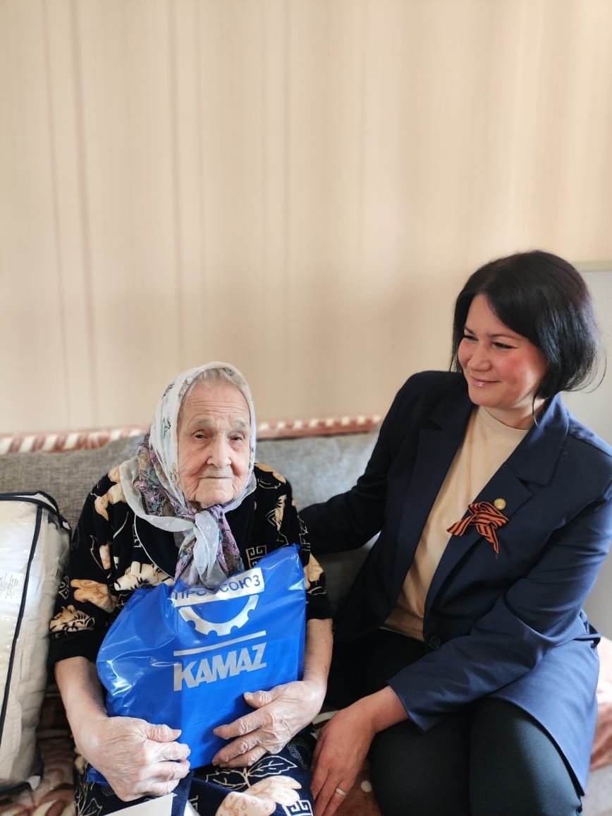 В преддверии 80-летия Великой Победы профсоюзный комитет совместно с администрацией ООО "КАМАЗжилбыт" организовали поздравление ветеранов и тружеников тыла на дому. Председатель ППОР КАМАЗжилбыт Нурлыева Гульназ и заместитель председателя Маркова Оксана от имени предприятия ООО «КАМАЗжилбыт» навестили и поздравили тружеников тыла: Дождикову Анфису Филипповну, Лутфулину Бибиасму Мулахметовну, Нурмухаметову Кашифу Галимзяновну, Сутурину Софию Алексеевну. Им вручили ценные подарки и продуктовые наборы. Ветераны были очень рады гостям и благодарны за проявленные к ним внимание и заботу.