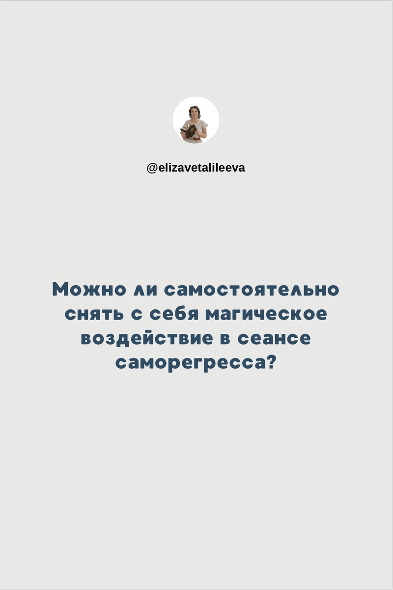 Можно ли самостоятельно снять с себя магическое воздействие в сеансе саморегресса? Ответ положительный ✔️ В саморегрессах человек может самостоятельно обнаруживать на себе магию, выяснять её влияние, а также определять, кем и когда она была сделана. Кроме того, в саморегрессах человек может для того, чтобы избавиться от магии, найти в себе все причины — негативные факторы, которые привели к ситуации, когда на него было оказано магическое воздействие. Эти негативные причины могут быть связаны с: - Прошлыми жизнями - Родовыми негативами - Накопленными в этой жизни В саморегрессах человек может самостоятельно выявить каждый свой негатив, который привел его к магии. Затем он может обратиться к истории своего рода или к прошлой жизни, получить там всю необходимую информацию и провести работу над ошибками. Проработав таким образом каждый негатив, который стал причиной магии, человек может самостоятельно в саморегрессе снять с себя магию, вернуть её отправителю и отпустить также сущн