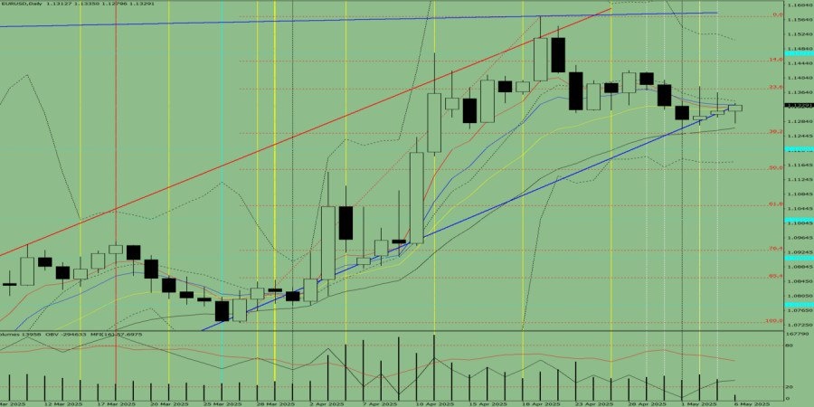https://basechop.ru/wordpress/?p=41401 Трендовый анализ (рис. 1). Во вторник рынок, от уровня 1.1313 (закрытие вчерашней дневной свечи), может продолжить движение вверх, с целью 1.1374 – откатный уровень 23.6% (красная пунктирная линия). При тестировании этого уровня цена, возможно, продолжит движение вверх, с целью тестирования откатного уровня 14.6% – 1.1450 (красная пунктирная линия). Рис. 1 (дневной график). Комплексный анализ: – индикаторный анализ – вверх; – объёмы – вверх; – свечной анализ – вверх; – трендовый анализ – вверх; – линии Боллинджера – вверх; – недельный график – вверх. Общий вывод: восходящая тенденция. Альтернативный сценарий: цена от уровня 1.1313 (закрытие вчерашней дневной свечи), может продолжить движение вверх, с целью 1.1374 – откатный уровень 23.6% (красная пунктирная линия). При тестировании этого уровня цена, возможно, начнёт движение вниз, с целью тестирования 21 средней ЕМА – 1.1267 (чёрная тонкая линия). Материал предоставлен компанией InstaFore
