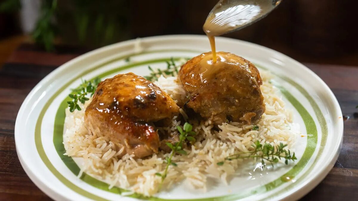Это блюдо из курицы с медово-горчичным соусом сочетает натуральную сладость мёда с пикантностью горчицы, создавая неповторимый вкус. Медленно запекаемые куриные бёдрышки с чесноком, тимьяном и белым вином становятся нежными, впитывая все ароматы. Мёд карамелизуется на поверхности, образуя аппетитную глазурь, которая идеально сочетается с насыщенным куриным соком. Вдохновлённый французской деревенской кухней, этот простой рецепт приготовления отличается яркими вкусами и приятной текстурой. Просто отправьте в духовку — и вуаля! 4 куриных бедра, без кожи и костей