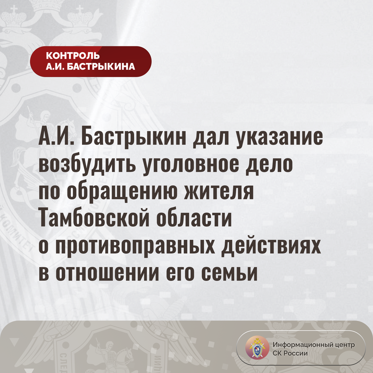 А.И. Бастрыкин дал указание возбудить уголовное дело по обращению жителя Тамбовской области о противоправных действиях в отношении его семьи