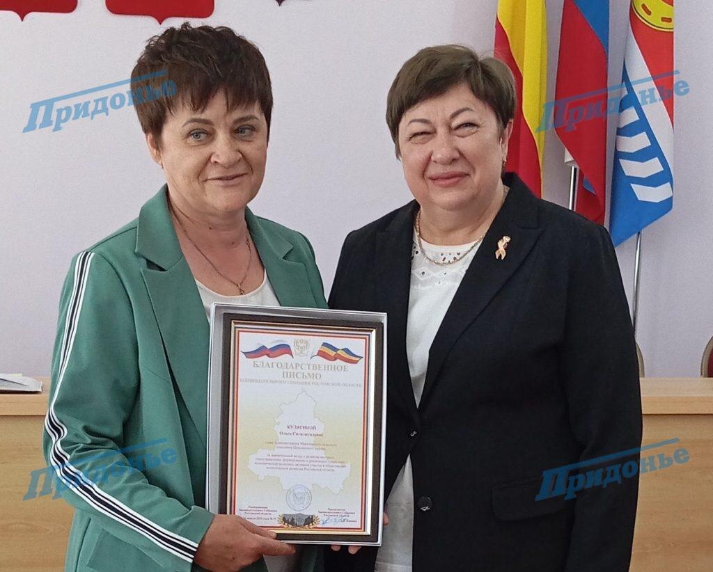 Глава Администрации Маркинского сельского поселения отмечена Благодарственным письмом Законодательного Собрания Ростовской области
