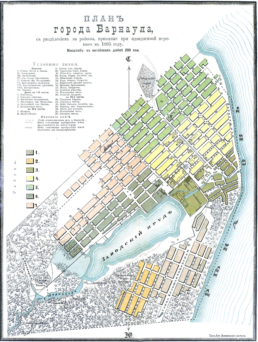 1. Это место - старые карты городов России. Здесь можно найти старинную карту нужного вам города и даже наложить на нее современную карту. Вот, например, план города Барнаула на 1895 год.
