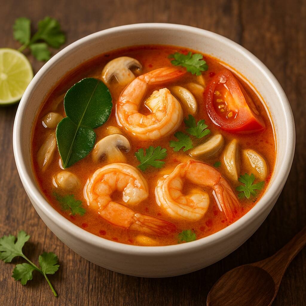 Привет, гурманы! Сегодня говорим о супе, который не греет, а встряхивает. Том Ям — это когда кислота, острота и аромат бьют одновременно, и ты такой: «Ого. Живу». 🌶️ Родился он в Таиланде, где жарко и влажно, а потому суп должен быть таким, чтобы всё сразу: остро, кисло, пряно, громко. Его не просто едят из миски — его проживают. 🍤 Классика — Том Ям с креветками. Но бывают и версии с курицей, рыбой, морепродуктами. Главное — не это. Главное — лимонграсс, галангал, листья каффир-лайма, чили и лайм. Без них — это просто горячая вода с продуктами ✨ Том Ям — это не суп на каждый день. Это суп «проснуться». Съел — и внутри будто включили свет 🍤Ингредиенты (на 2 порции): • 10–12 очищенных креветок