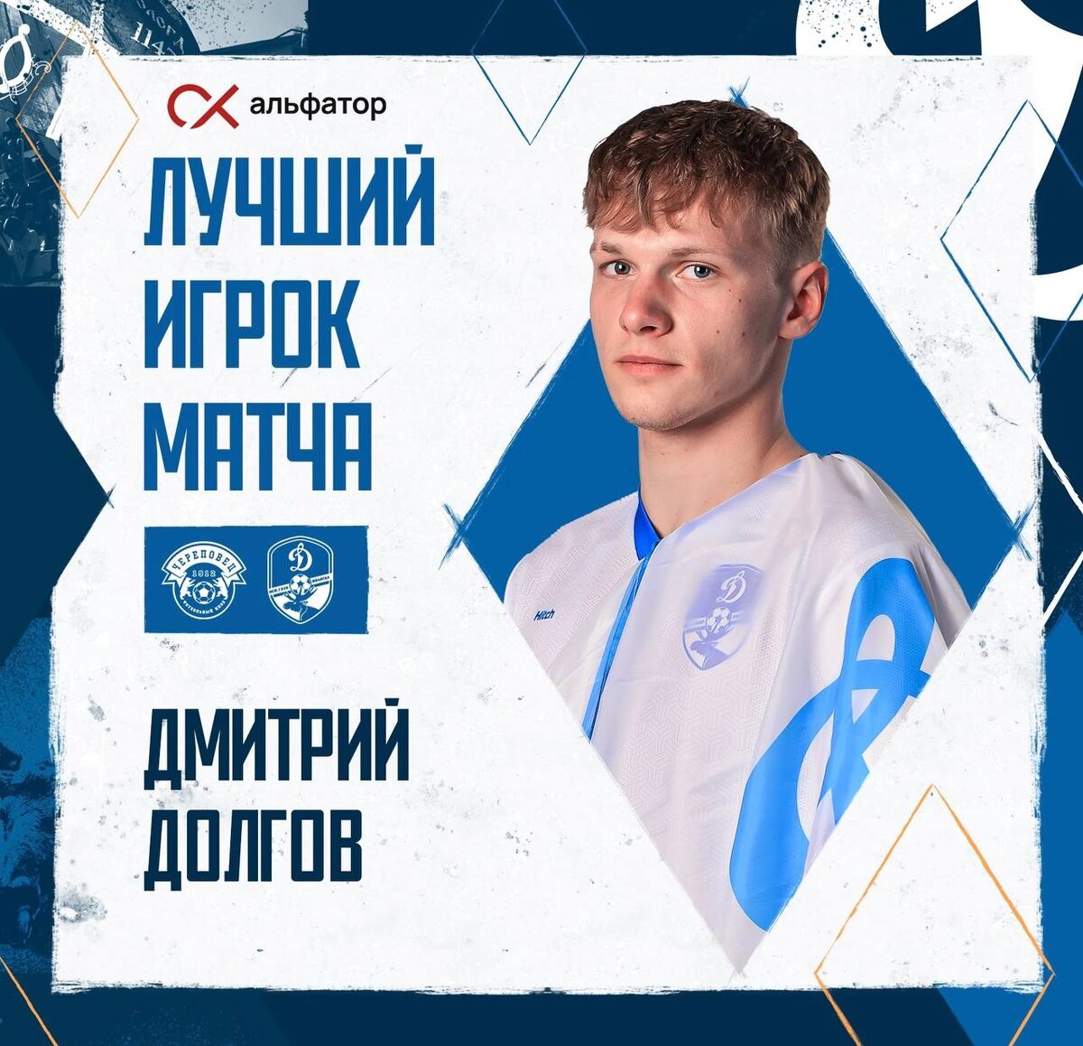 Дмитрий Долгов забирает звание «Альфатор игрок матча» по мнению болельщиков 🌟 Кстати, первый мяч в дерби записали на Диму 👀 Поздравляем! 💙 @dynamovologda