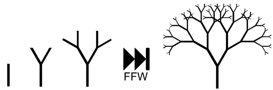 Привет друзья. С каждым из нас хотя бы раз в жизни происходила такая штука — в какой-то скучный момент жизни мы начинали рисовать рекурсивные узоры на листе бумаги, даже не понимая, что делаем. И, как правило, линия с двумя разветвлениями на конце начинает радовать глаз жителя Средней полосы России уже после нескольких повторений. Потому что это красиво. Эта простая концепция представляет собой фрактальную фигуру: самоподобный геометрический объект. Но что имеется виду под самоподобием? Грубо говоря, это выглядит так: если увеличить какую-то часть изображения, оно всё равно будет выглядеть так же (или почти так же), как оригинал, потому что один и тот же узор повторяется снова и снова. Фигура, которую мы видим выше, называется пифагорейским деревом. Но не потому, что Пифагор имел какое-либо отношение к её изобретению, а потому, что её первая формула была выведена с использованием квадратов, и её изобретатель Альберт Э. Босман решил назвать её в честь «короля» квадратов. Ещё один фракта
