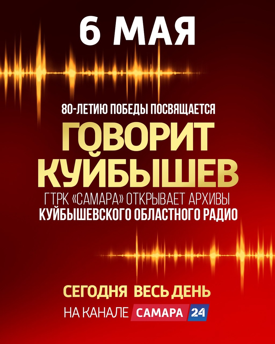 📺📺📺📺📺📺📺📺📺 ❗️❗️❗️❗️❗️❗️Впервые в истории филиала ГЛАВНОГО МЕДИАХОЛДИНГА РОССИИ — ГТРК «Самара» — РАДИО говорит голосами истории из ТЕЛЕЭФИРА. Уникальный телерадиомарафон посвящен 80-летию Победы в Великой Отечественной войне. 🔷В архивах самарского радио, вековой юбилей которого мы отметим через пару лет, всё это время бережно хранятся бесценные записи, сделанные нашими предшественниками в годы войны, когда Куйбышев был объявлен запасной столицей. Жители города показали примеры ратного и трудового подвига, которые нашли отражение в радиопередачах того времени. 🔶Магнитные пленки хранят десятки тысяч голосов прошлого - героев-лётчиков, фронтовых медсестёр, узников концлагерей, тружеников тыла, музыкантов и артистов, эвакуированных в закрытый город на Волге. 🔷Было бы неправильно не поделиться столь редчайшими записями с нашими читателями, зрителями и слушателями. Именно поэтому принято решение провести нон-стоп радиовещание в телевизионном эфире канала «Самара 24», начиная с