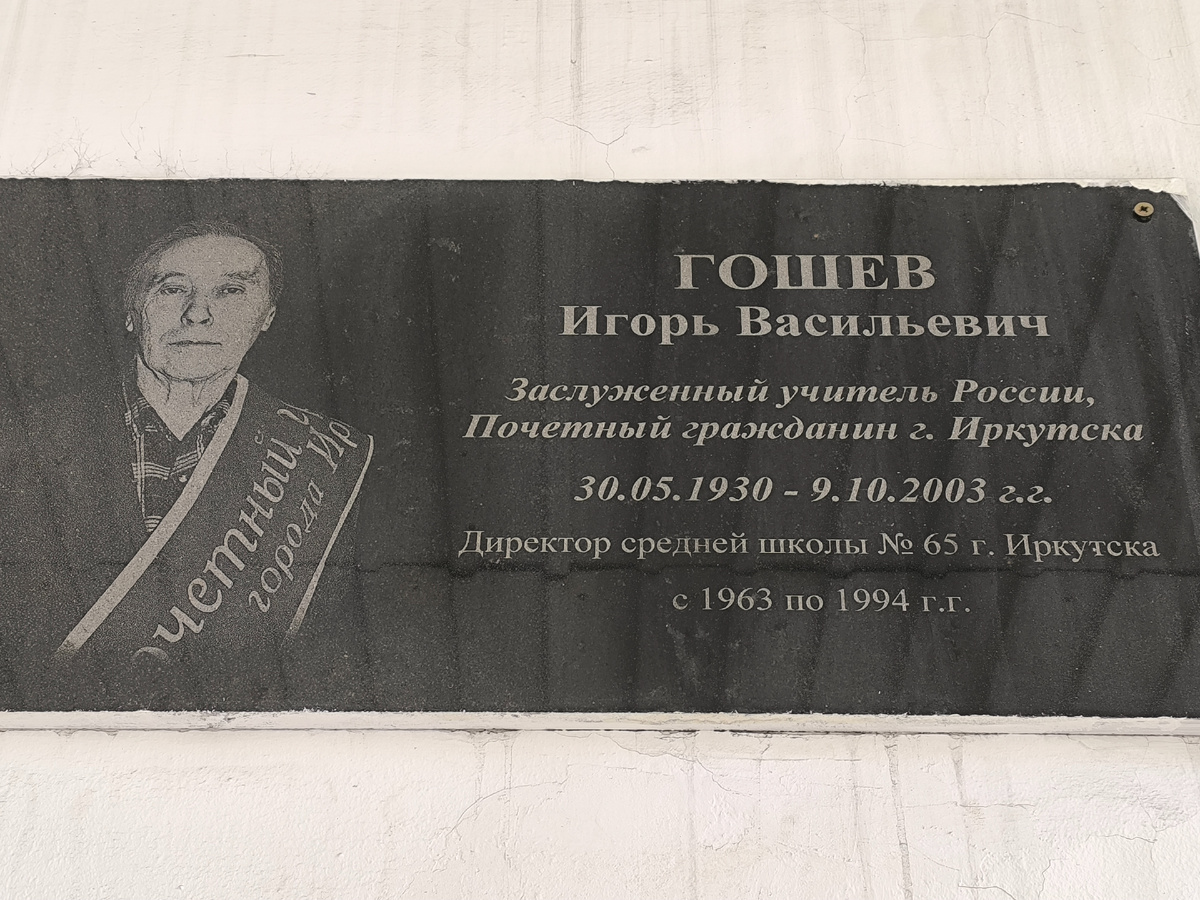Почётный гражданин Иркутска Игорь Васильевич Гошев был тут директором 31 год... С 1951-го – в профессии учителя. Вот это преданность делу! Игорь Гошев был награждён знаком «Отличник народного образования РСФСР» и медалью Ушинского. Почитать больше об этом иркутянине не успела, наша школьная колонна двинулась в сторону центра города.