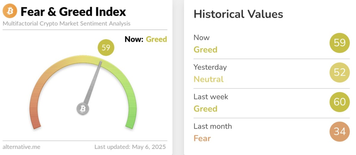 Крипто «Индекс страха и жадности» 59