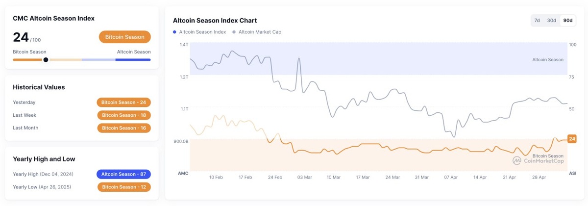 Индекс сезона альткоинов 24... такой же, как и в предыдущий день