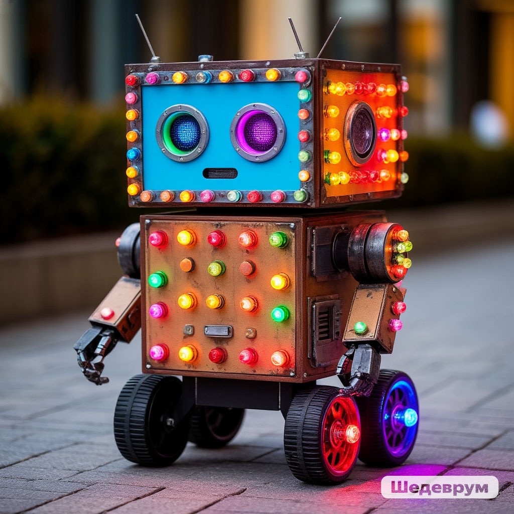 ( Байки Пафнутия) С наступлением тепла Пафнутька стал такой оживленный, песни поет, стихи читает, танцует брейк-данс. «Это чей там слышен топот? На работу вышел робот. Мышцы металлические, мысли электрические».©️ Есть в одном городе кружок энтузиастов изобретателей. Ребята подобрались хорошие, место для встреч нашли в гараже у Акимыча. У него трехэтажный гараж, один сверху и два вглубь для картошки и остального. Аппарат он прикупил и гонит огненную воду очаровательной крепости. Собрались как-то члены кружка « умельцы на все руки от скуки»на дегустацию, попробовали, крякнули и пришла Акимычу мысля построить из, выброшенного за ненадобностью, робота. Не простого, мигнул-икнул-подергался, а чтобы от него помощь женщинам была в их кухонно-бытовом рабстве. Всю осень и зиму чертили, плановали, дегустировали, собирали по помойкам ненужные приборы, пришедшие в негодность. Наконец, из стиральной машины « Сибирь», пары утюгов, швейной машины « Зингер» 1890 года выпуска, холодильника «