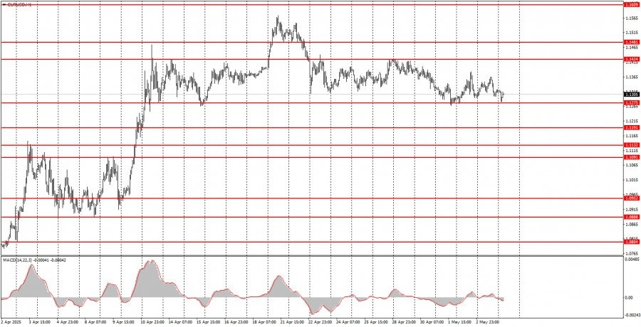 https://basechop.ru/wordpress/?p=41387 Разбор сделок понедельника: 1Н график пары EUR/USD. Валютная пара EUR/USD в понедельник вновь торговалась и вверх, и вниз, что лишний раз подтверждает факт наличия флэта. Цена уже больше трех недель торгуется преимущественно между уровнями 1,1275 и 1,1424. На данный момент она располагается около нижней линии бокового канала, поэтому вполне можно ожидать отскок и новый виток восходящего движения, для которого не потребуется ни фундамент, ни макроэкономика. В понедельник Дональд Трамп «проснулся» после трехнедельной спячки и ввел новые тарифы. На этот раз они коснулись кинематографического сектора, а размер тарифов на импортные фильмы будет составлять 100%. Также в понедельник был опубликован индекс деловой активности ISM в секторе услуг США, который неожиданно оказался выше прогнозов, что и помогло доллару во второй половине дня. Однако смысла в этом отчете и факте наличия реакции рынка нет никакого, так как пара все равно осталась внутри боково