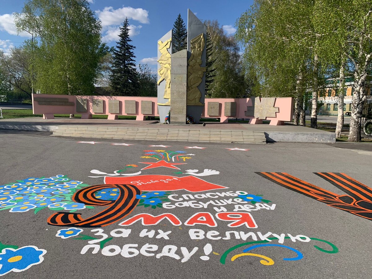 В центре Курьи на асфальте засияла открытка, посвященная Дню Победы