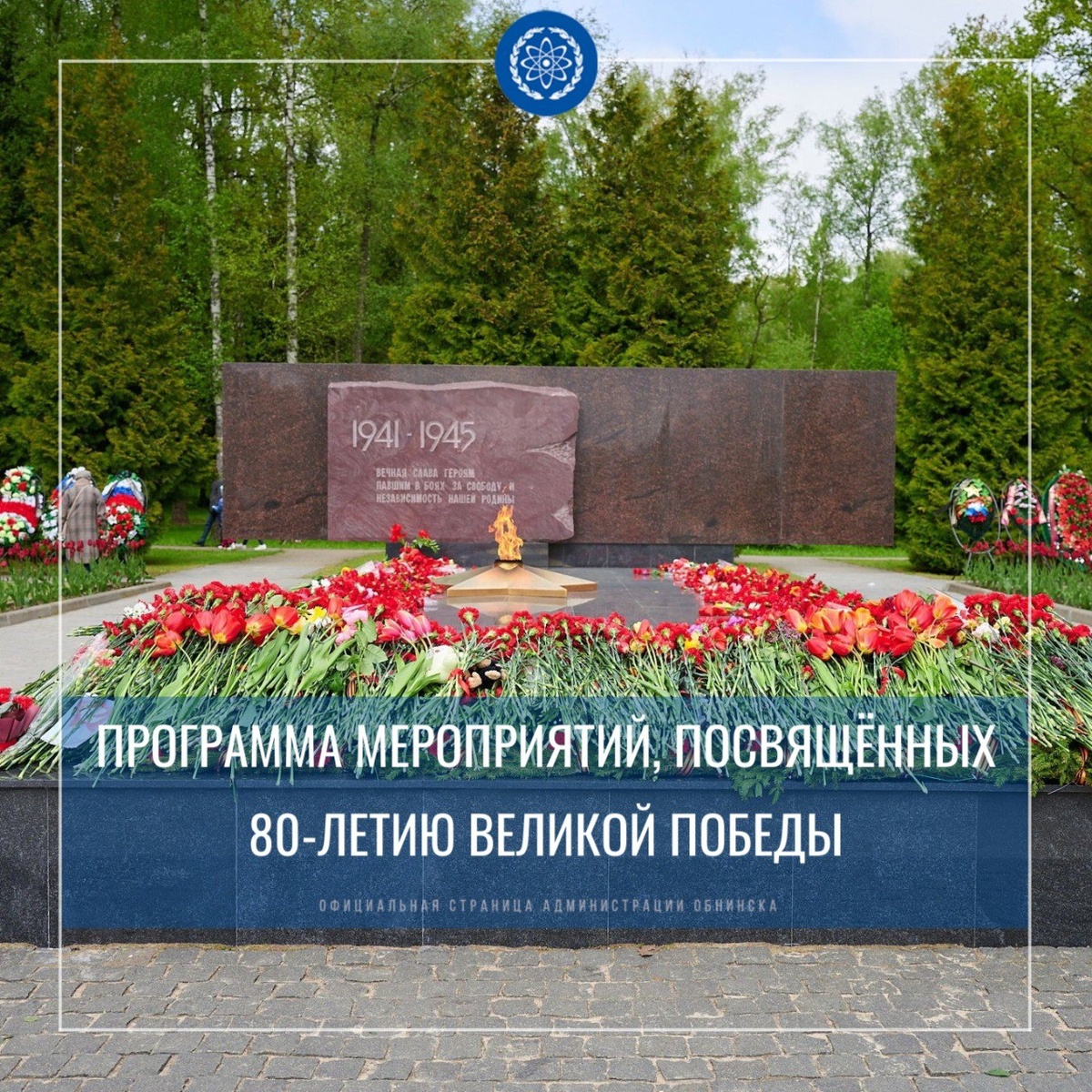 Программа мероприятий, посвящённых 80-й годовщине Победы в Великой Отечественной войне 1941-1945 годов ДЕНЬ ПОБЕДЫ 9 МАЯ 🥇 Мемориал «Вечный огонь» 8:15 Старт традиционного легкоатлетического пробега 9:00 Лития по погибшим воинам в Великой Отечественной войне 1941-1945 гг. 10:00 Митинг на мемориале «Вечный огонь». Возложение венков и гирлянд, прохождение войск обнинского гарнизона. Проведение патриотических акций 18:50 Всероссийская «Минута молчания» 🥇 Детская школа искусств №1, ул. Жукова, 8 11:00 Праздничный концерт учащихся и преподавателей школы «Поклонимся великим тем годам». Танцплощадка. Пение песен военных лет под аккомпанемент баянов 🥇 ул. Жукова, аллея 11:00 Акция Централизованной библиотечной системы «И в памяти, и в книге навсегда», игровые станции «Дорогами Победы» от Обнинского молодёжного центра 🥇 Площадь у фонтана на ул. Победы 11:00 – 13:00 Патриотическая театрализованная концертная программа «Победа в сердце каждого живёт!» Квилт – проект «Цвет нашей Победы!».