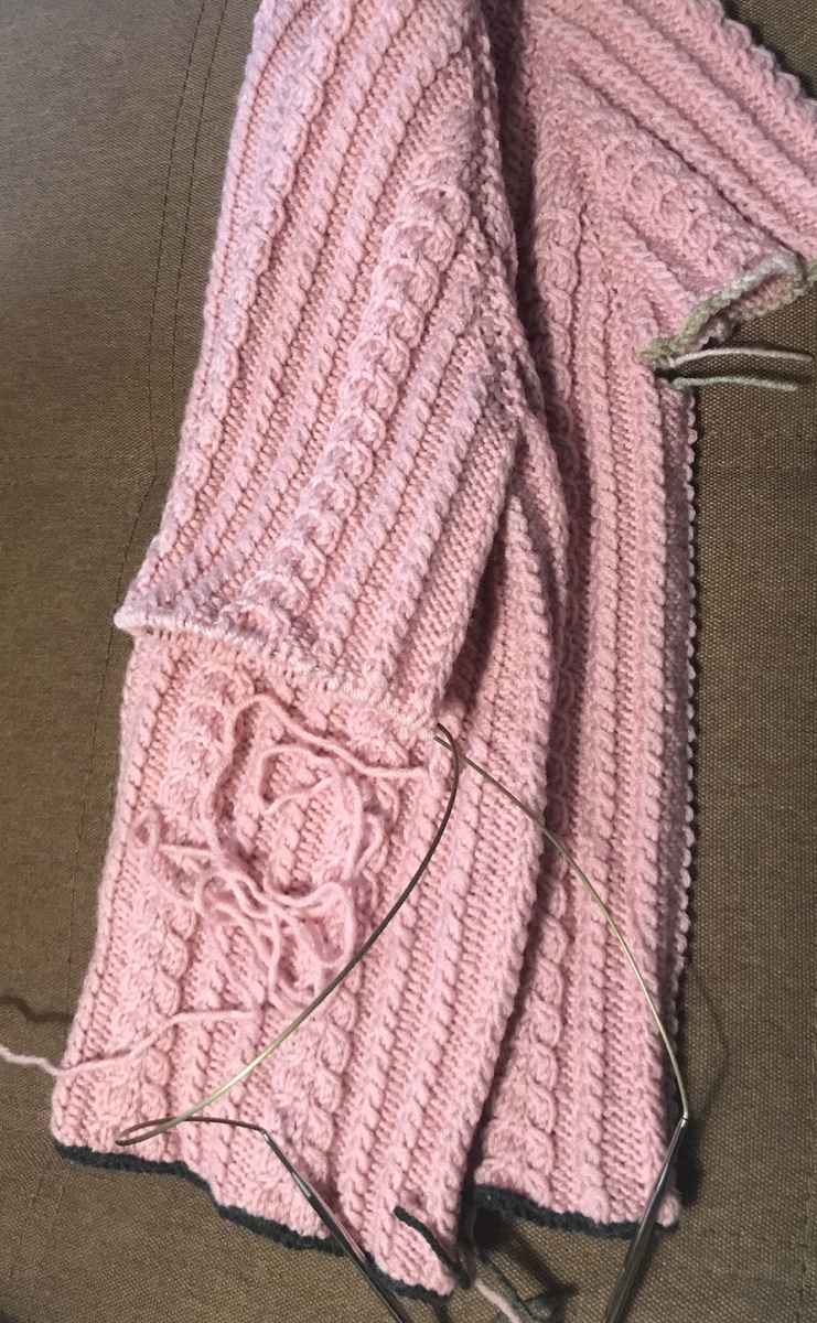 Решила взяться за рукава джемпера Розовый фламинго. Пряжи осталось ровно два мотка, из каждого свяжу по рукаву и все остатки на корпус пущу. Вполне разумный план. 🤗 Начала. Но только с третьего захода дело пошло. 😯 Первый раз набрала петли, связала около трёх сантиметров и вижу, не то. Распустила. Второй раз набрала, снова несколько сантиметров и снова роспуск. Давно со мной такого не было. 😂 Только перед третьим набором петель на спицы я тщательно всё обдумала и просчитала петли. Вот только тогда получилось так, как мне надо. 😊 Узор идеально сошёлся по внутренней стороне рукава, даже жаль нарушать эту гармонию убавлением петель. И как быть? Я же планировала рукав заужать. 🤔 Связала до первого предполагаемого места убавки и отложила вязание в сторону. Нужна примерка, чтобы посмотреть рукав, так сказать, в деле. 😄 Возможно, оставлю рукав неизменным по ширине на всём протяжении. В ожидании модели, мои мысли - мои скакуны понеслись зачем-то листать в памяти узоры. И долистали