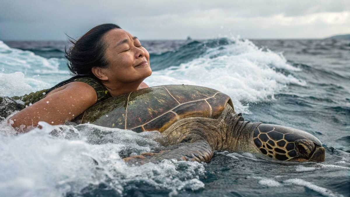Женщина чувствовала: животное поднимает голову, шумно дышит, но не уходит. Вокруг, как в коконе, стало чуть тише — даже течение показалось слабее возле черепахи.