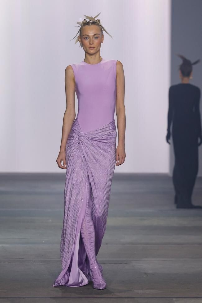 Лаванда — это про ностальгию, про лето детства, про ту самую любимую футболку, в которой ходила в каникулы по даче. Но если смотреть на него не с бытовой, а с эстетической стороны, лавандовый — цвет уверенных женщин, умеющих сочетать в себе мягкость и сдержанность. В нем нет наигранной женственности, но есть изысканная хрупкость. Он хорошо звучит в гардеробе, где есть нюдовые оттенки, серо-бежевые базы, капля золота.