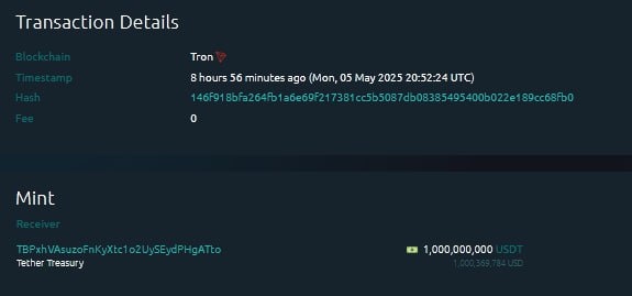🔼 Tether напечатал 1 млрд USDT в сети Tron